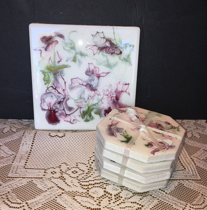 "Belle Fleur" 4 Coasters & Trivet Set (SOLD)